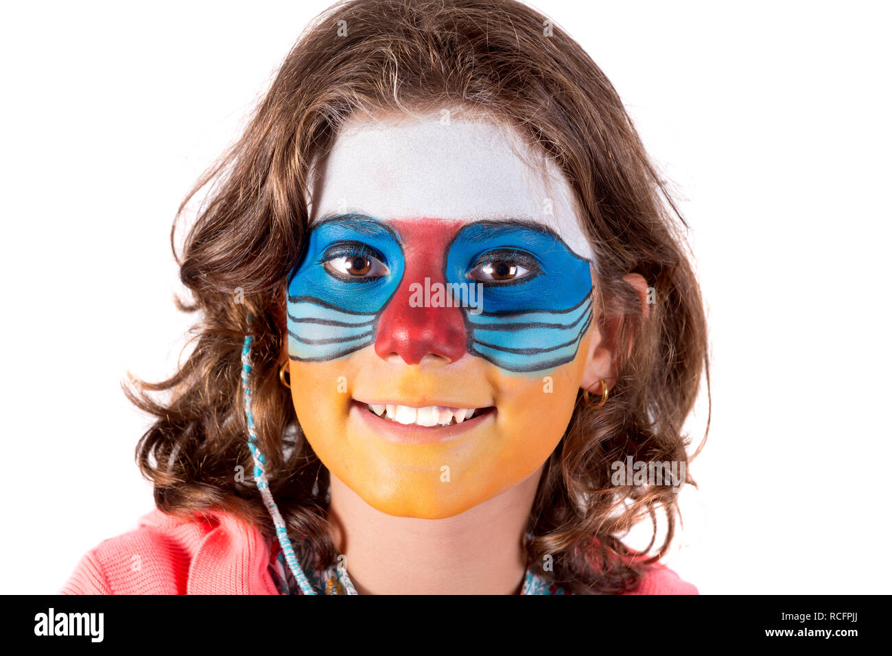 Girl With Animal Face Paint Isolated In White Stock Photo Alamy